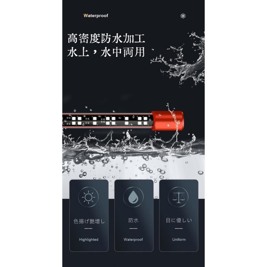 ・マジックライトはUVBを含む、紅龍の発色に直接刺激を与える効果があります。(短期間で発色範囲を広げたいならMAYIN 13000K UVテニングライトもオススメいたします。)日光モードと月光モードがあり、明るい、水が赤くならない、紅龍の赤を引き出す。