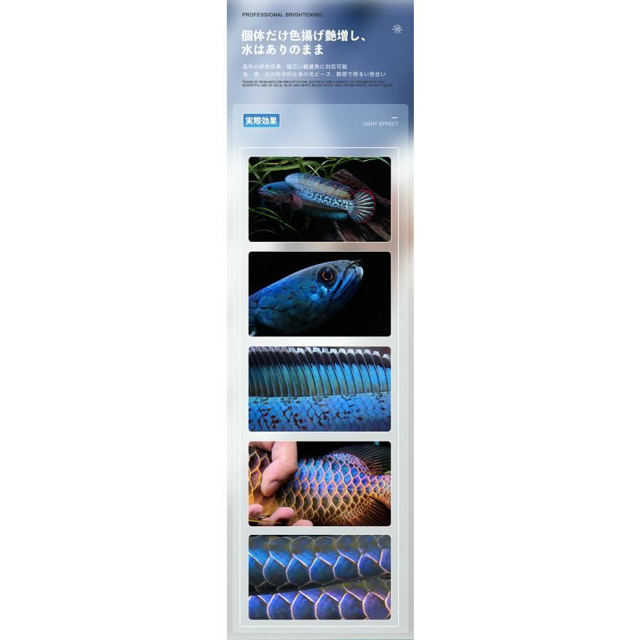 CIPSアロワナ世界コンテスト指定用ライト中国龍協カップインドネシアBRAGON ONLINE COMTESTなどアロワナコンテスト指定ライト中国龍魚協会連任常務理事機構中国万里の長城カップ/龍協カップ 審判委員世界多国コンテスト指定専用ライト、プロのために作られた専用ライトブルー、レッド、グリーン系熱帯魚に色揚げ艶増し効果抜群!マトリックス光源、より広い照射範囲を実現科学的に光の透過率と明るさを向上させ、より広い範囲を照らすことができる。 よりクリアな視界と快適な視覚効果。 ブルー、ホワイト、ゴールドの高品質ビーズで明るく透明感がある水、生き物本来の色を復元します。本当のMAYINの実力をお客様に体験させていただきたいため、弊社はあえて何も変更せず、220V中国仕様で仕入れしております。26cm〜92cmまでは変圧なしで安定にご利用いただけますが、光は変圧器付きで使うよりはやや弱くなります。112cm〜172cmまでは変圧器が必須になります。ご注意ください。変圧器について、弊社はお客様に安心安定にご利用いただけるため、変圧器製造業界の基準としたメーカー「 UMI 」社の変圧器をライトとセットで販売しております。価格も仕入れ値のままでお客様に提供しております。ぜひセットでのご購入をご検討を宜しくお願い致します